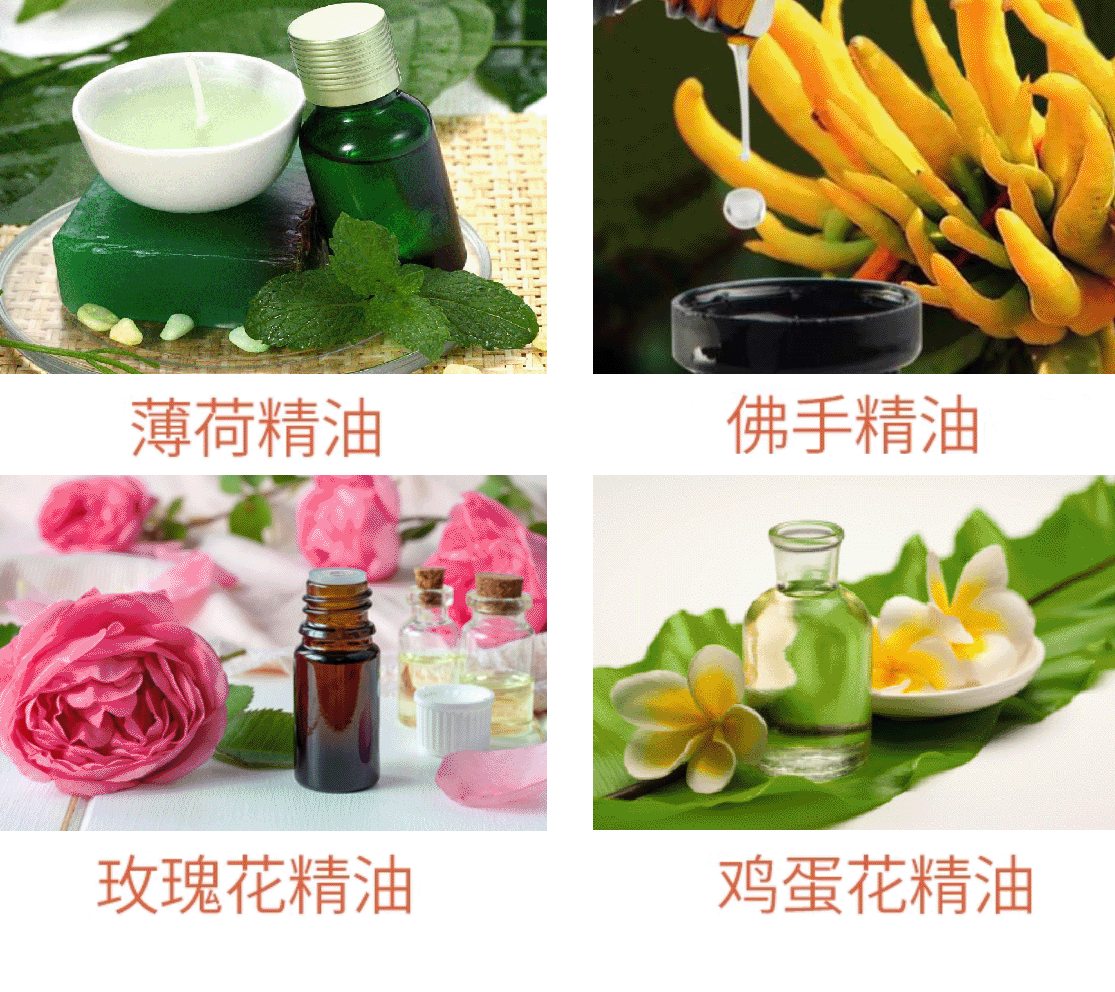 1:常规植物花叶:天竺葵、玫瑰花、柠檬香脂、桂花洋甘菊、野山菊、薰衣草、艾草、迷迭香、广藿香腊梅、香根草、槐花、见月草、薄荷、百里香。